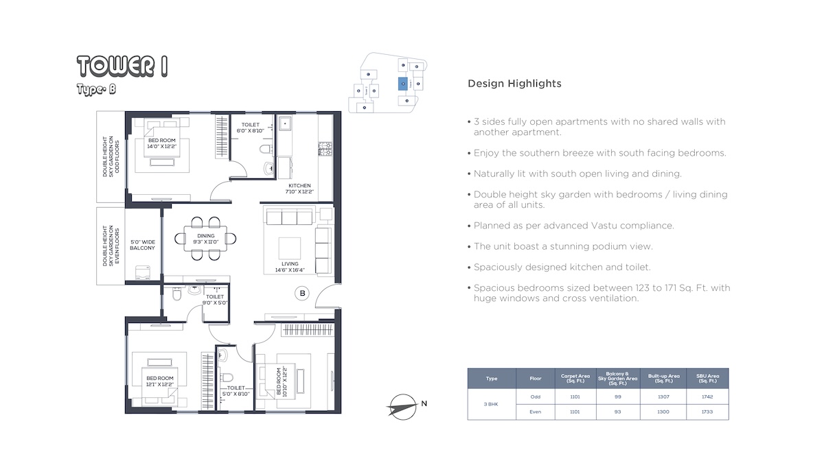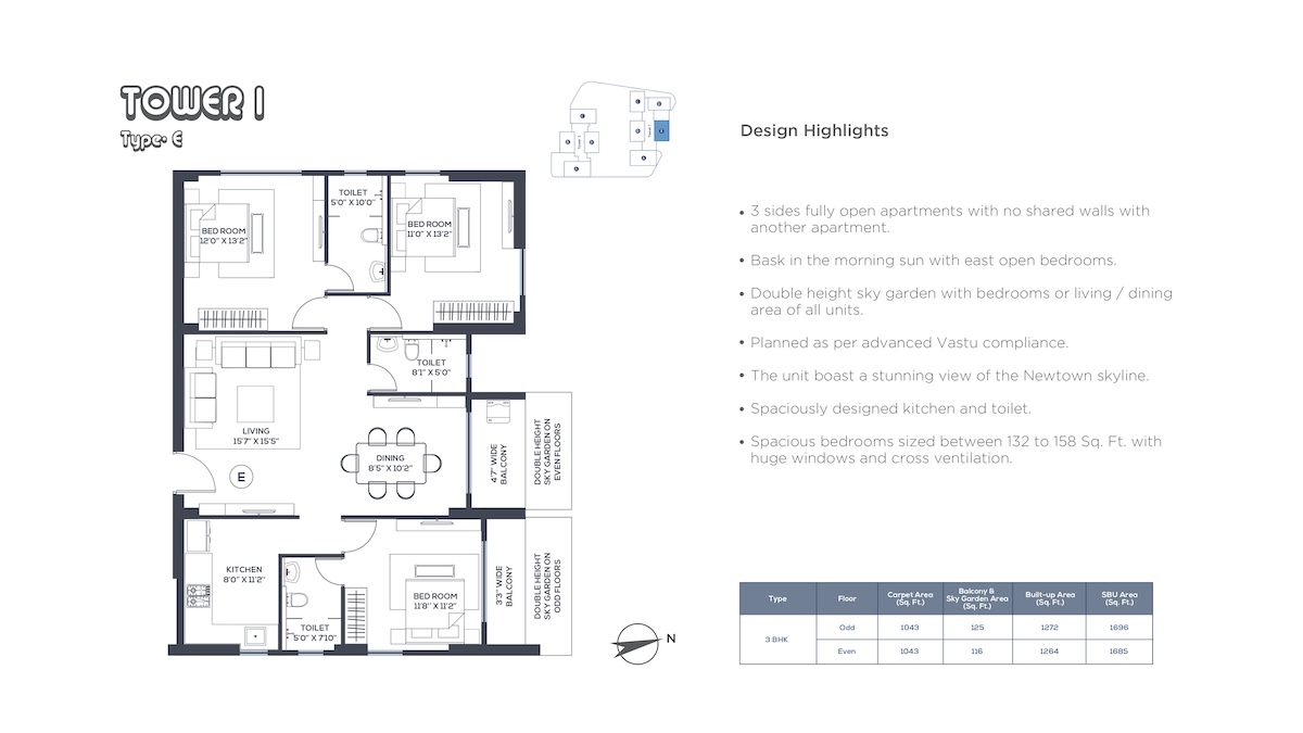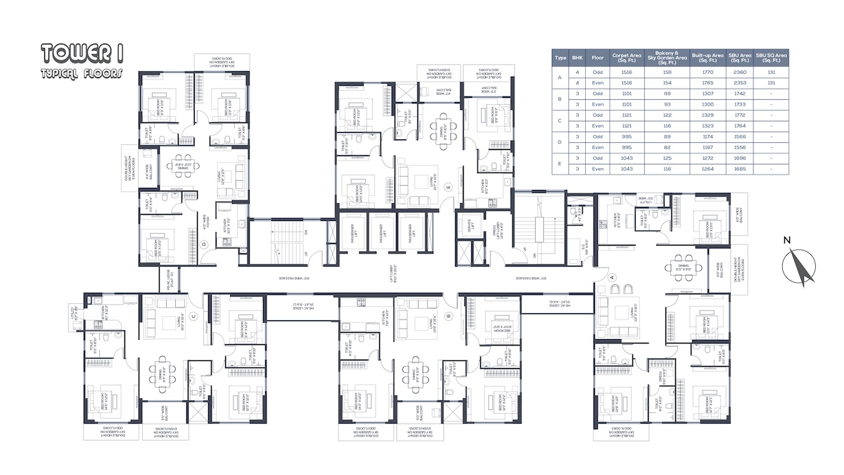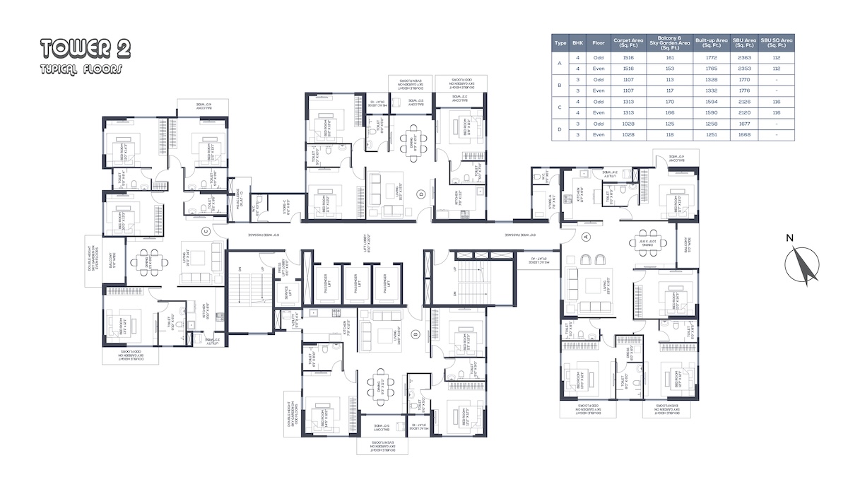 The project boasts Vaastu-compliant 3 and 4 BHK homes, each featuring its own double-height sky garden and 3 sides open units, bringing together convenience, security, and efficient space solutions.